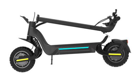 This electric scooter is equipped with dual 1000W brushless direct current (DC) motors, one located at the front and the other at the rear. Despite carrying a load of up to 130kg, it can still achieve a top speed of 50km/h.