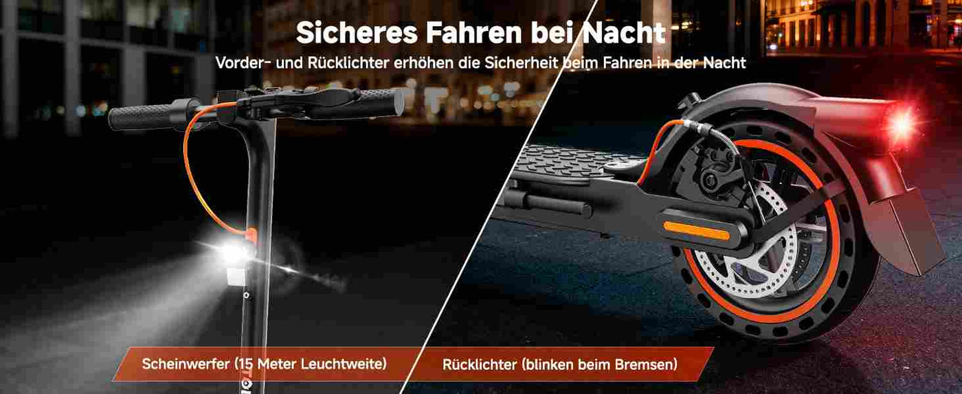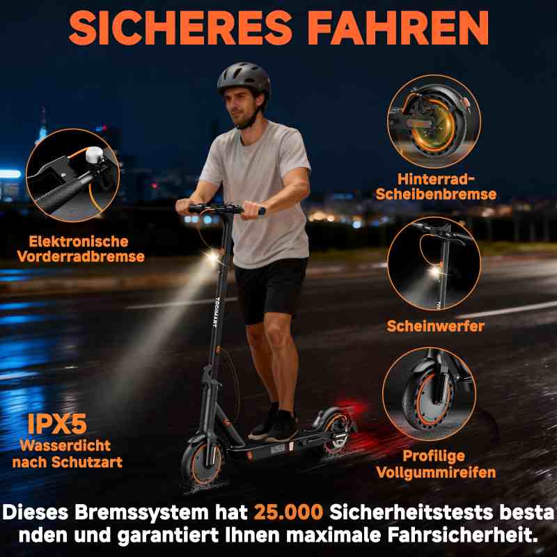 Dank der Schutzart IP54 ist er wasserdicht und kann auch bei leichtem Regen gefahren werden.