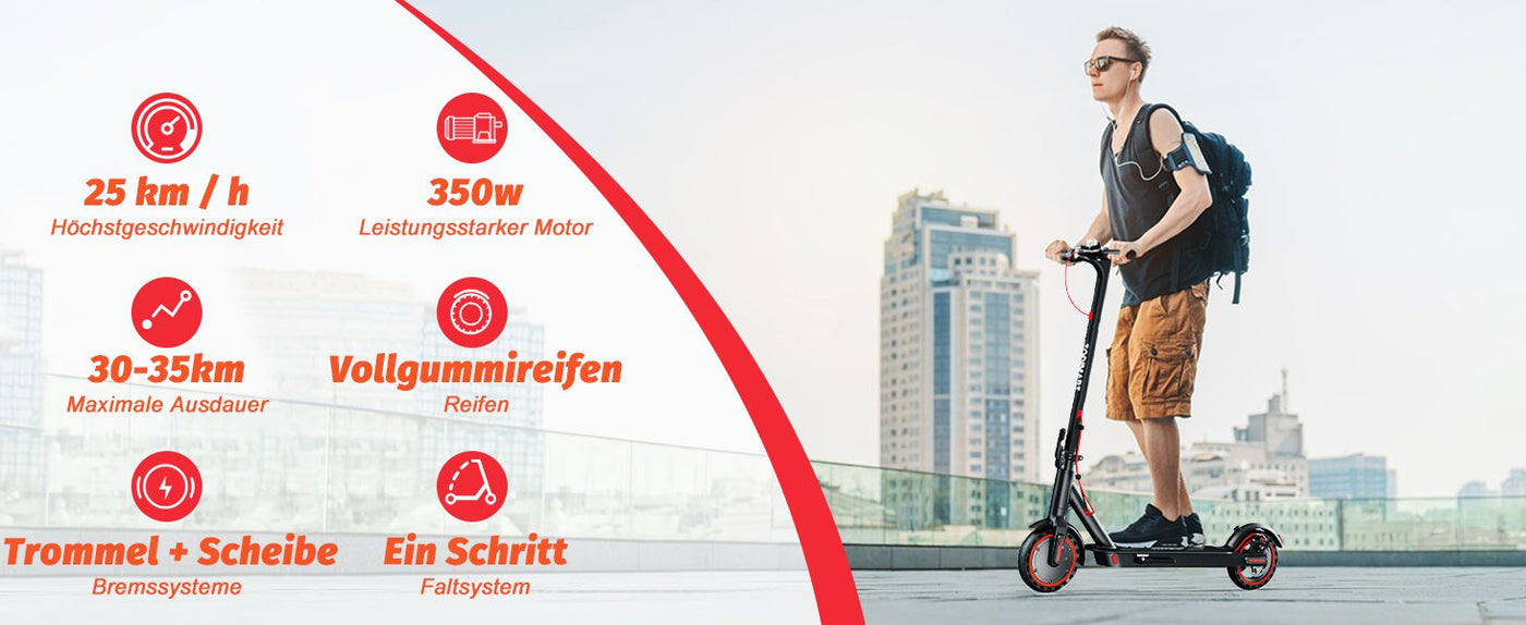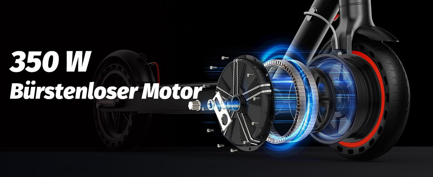 • 350-W-Brushless-Motor mit hohem Drehmoment, Höchstgeschwindigkeit 25 km/h, Steigfähigkeit bis 15°, ideal für den täglichen Arbeitsweg und verschiedene urbane Terrains