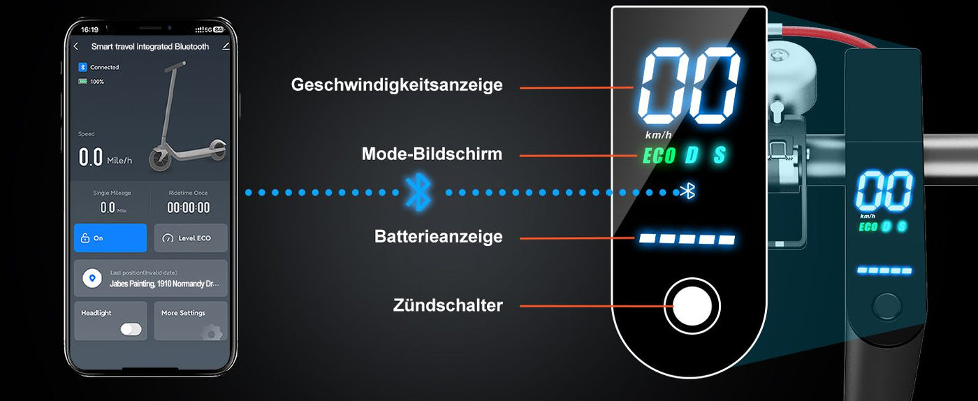 • Smarte Bluetooth-App-Konnektivität: Echtzeit-Überwachung von Akkustand, Geschwindigkeit und Kilometerstand; Diebstahlsicherung per Knopfdruck; Dauerlicht; Zero-Start-Modus