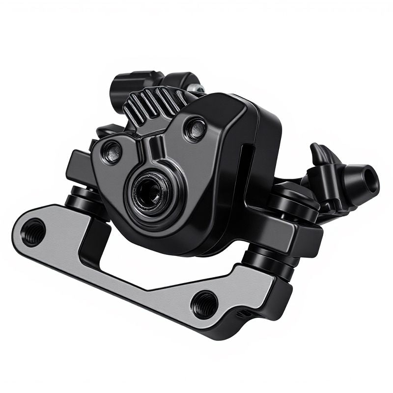 The brake calipers for TODIMART adult e-scooters are located on one side of each wheel, front and rear. The calipers come with brake pads, eliminating the need to purchase them separately. The function of the brake calipers is to stop the e-scooter. The brake signal is transmitted via brake cable from the electronic or hydraulic brake lever to the calipers, causing them to react and stop the e-scooter. This ensures rider safety.