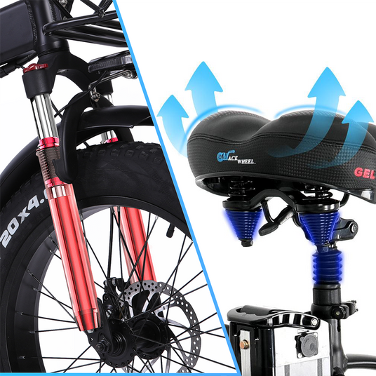 Expérimentez un freinage précis Fourche avant avec double absorption des chocs hydraulique, siège à triple absorption des chocs, combiné à des pneus ultra-tendres de 20*4 pouces, vous offrant une expérience de conduite semblable à celle de flotter sur des nuages.